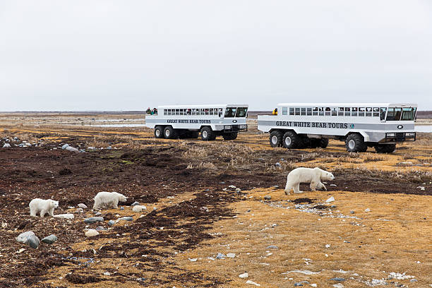 Board the Arctic Crawler™, a custom-built tundra vehicle, and venture into the Churchill Wildlife Management Area. Travel along the Hudson Bay coastline to prime polar bear viewing areas, where these incredible animals gather as they await the winter ice to form. Known for their curious nature, polar bears are often seen up close, sometimes approaching the vehicles for a closer look.
